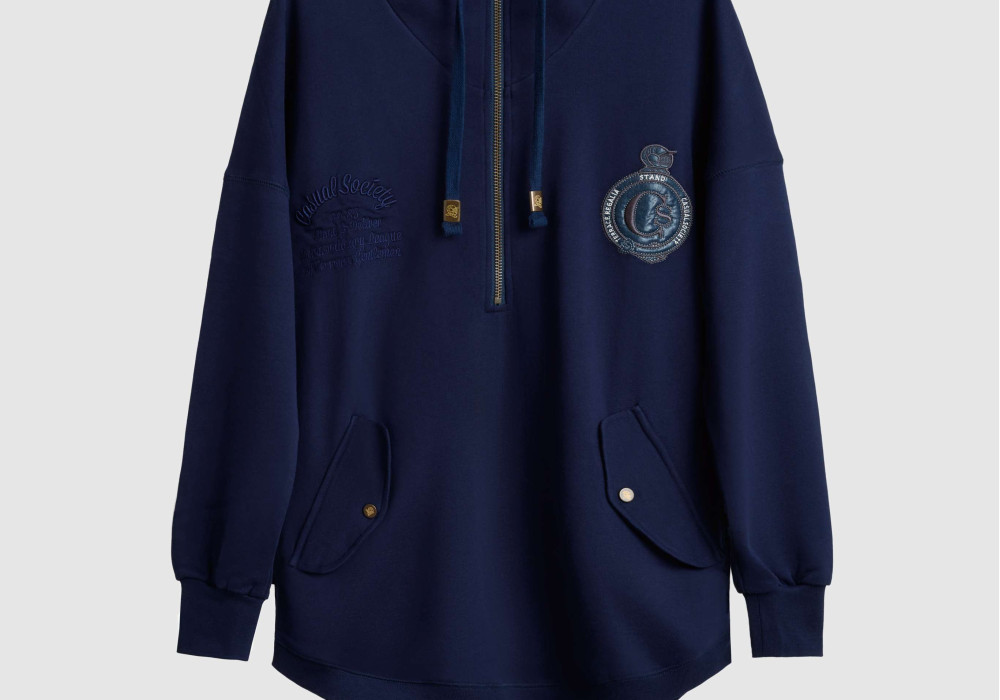 The refined double jersey fabric has replaced the original “duck canvas”, where the re-worked silhouette incorporates a three-quarter length zip, from the neckline down to the chest. The length of the coat has been cropped to jacket status, for every day, trans-seasonal use.