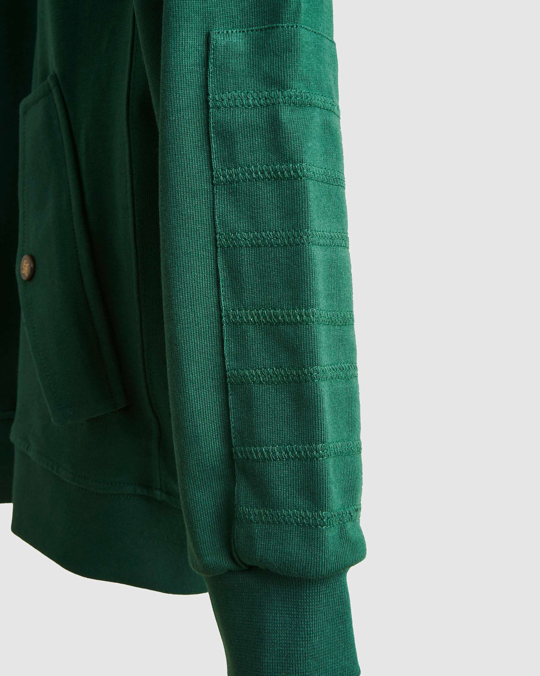 • Brass Toggles, Press Stud Placket & Zipper Pocket with Press Stud Detailing