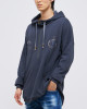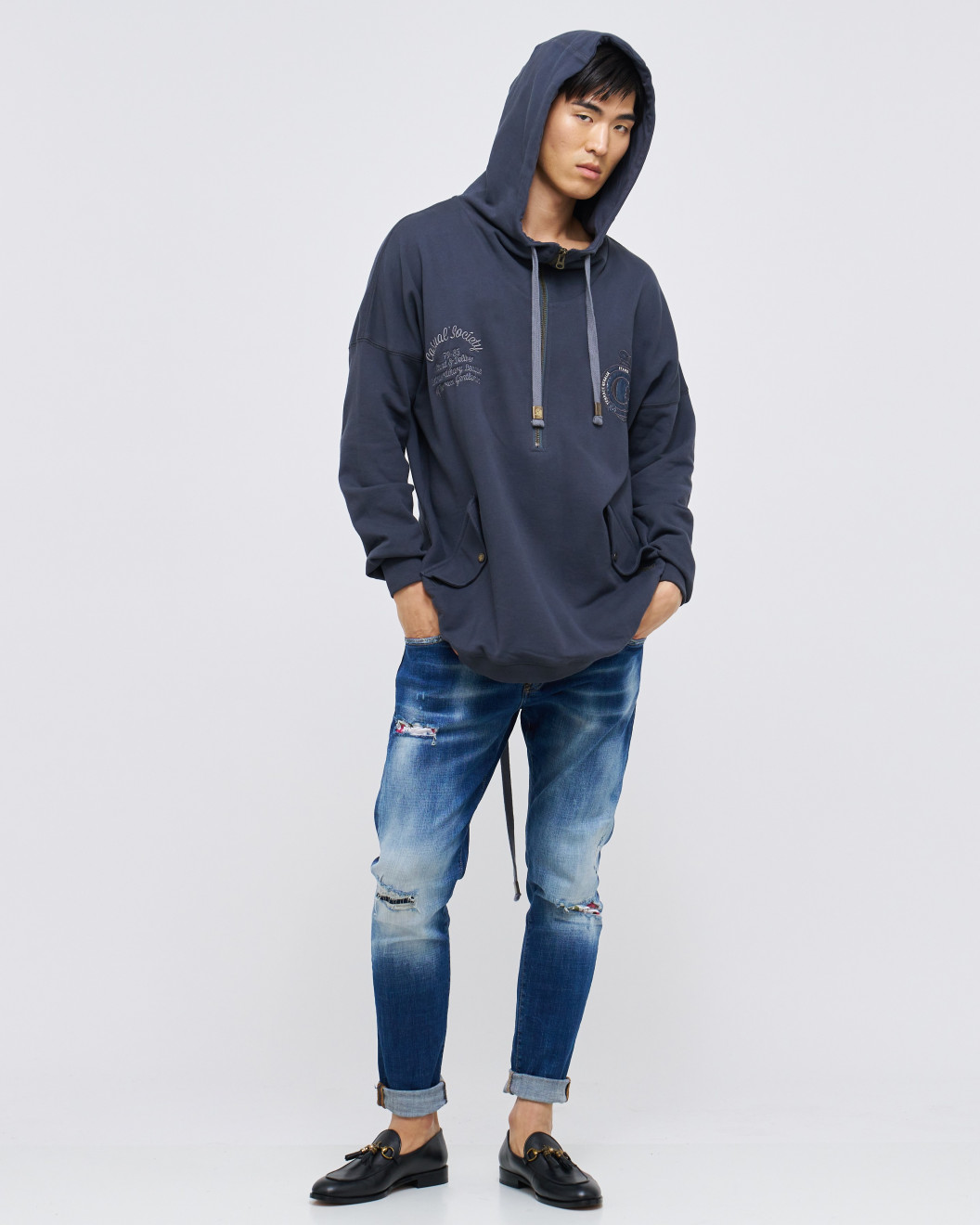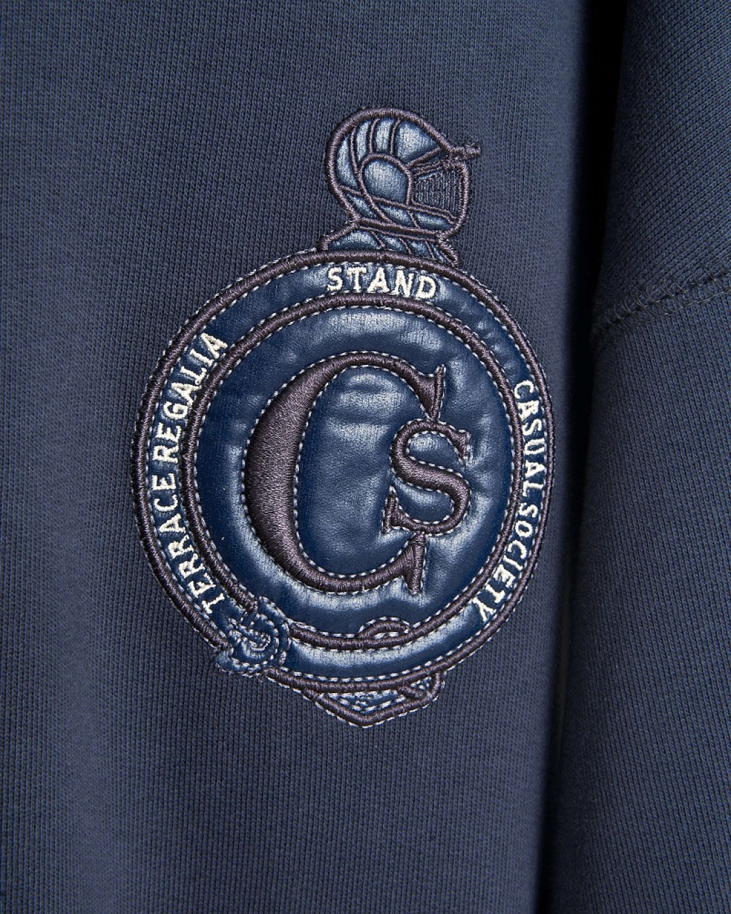Men's Grey Loop-back Cotton Sweatshirt Parka, with Casual Society Logo in Micro-Leather Embossed Embroidery